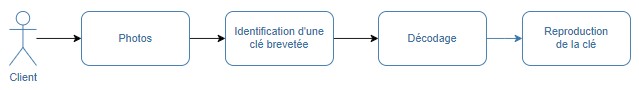 Si la clef photographiée n'est pas brevetée, les photos décodées sont transmise à un atelier de serrurerie qui reproduira un double comme le ferait n'importe quel serrurier ou clé-minute. Si le prestataire ne vous confirme pas les coordonnées de ce prestataire, c'est qu'il vous cache quelque chose.