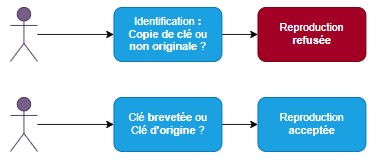 Pour obtenir une copie de clef brevetée, seule l'usine propriétaire du brevet est légalement en capacité de la reproduire, et ce, tant que le brevet est valide. - Dès lors qu'une clé n'est pas brevetée ou que le brevet est tombé, les fabricants d'ébauches vierges peuvent fabriquer des ébauches du modèle.
